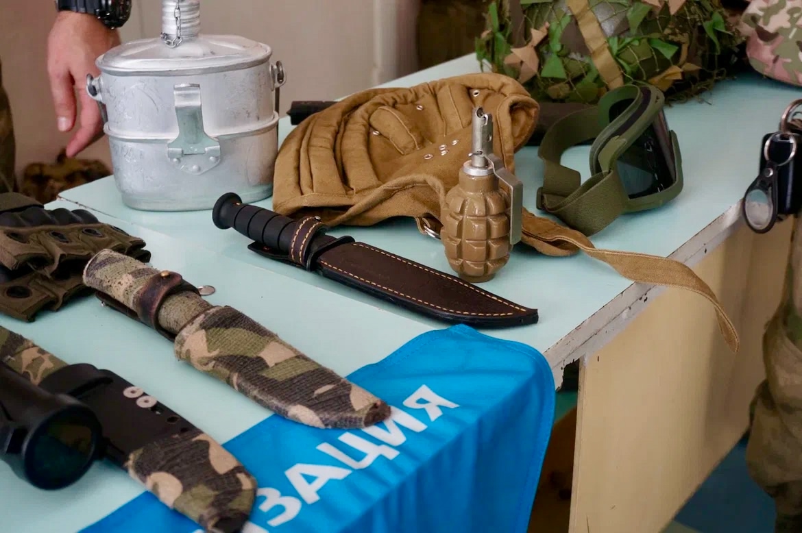 Ребята с интересом их рассматривали, примеряли, спрашивали об истории и использовании в бою.